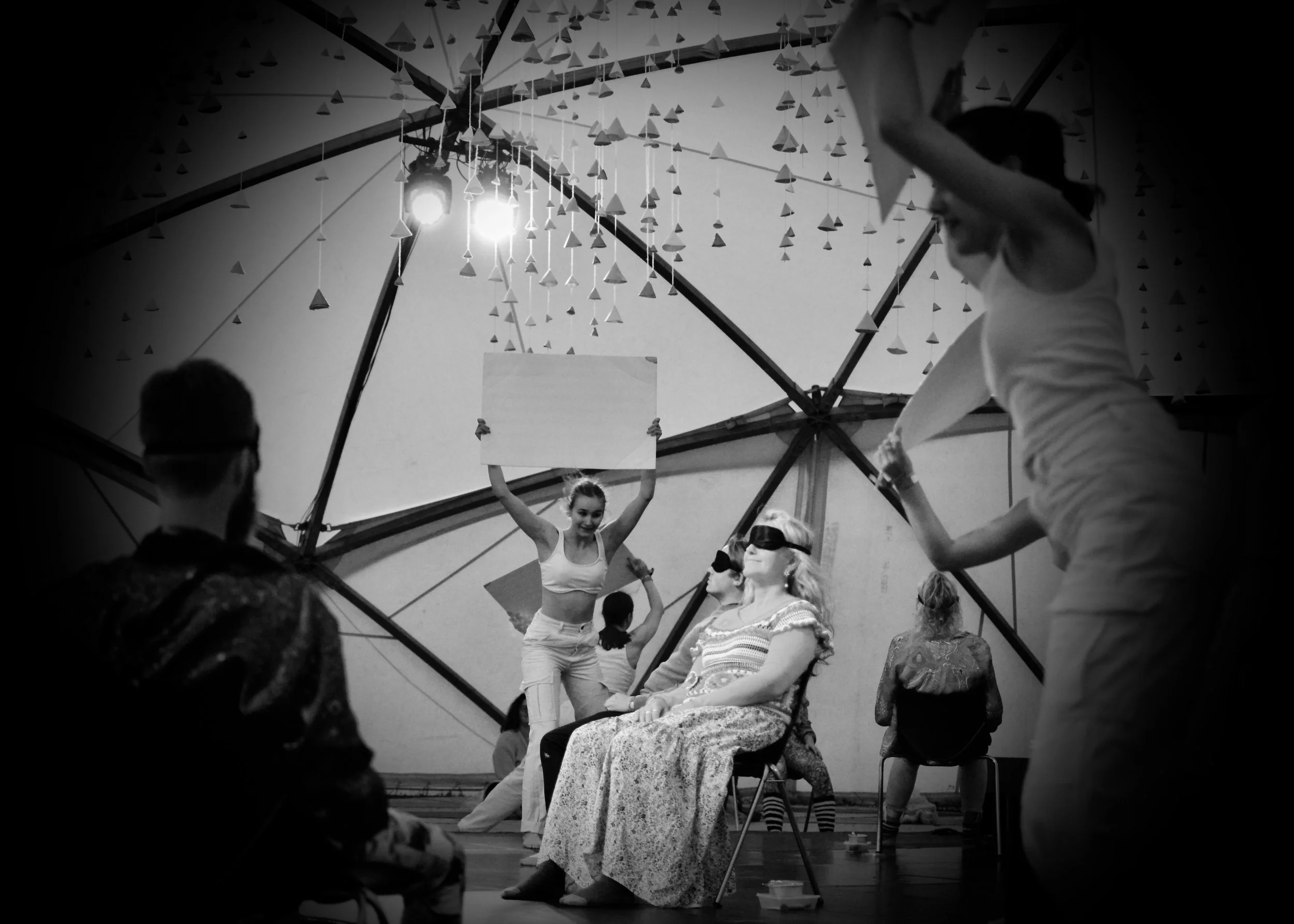 Experiencers are blindfolded and paired up one-to-one with a performer for an intimate journey through music using movement, touch, taste and even scent.